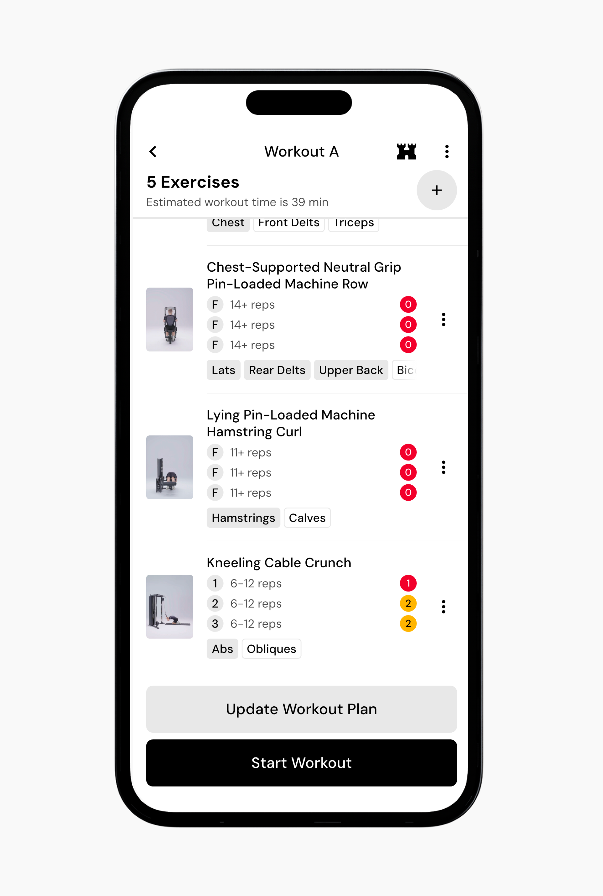 When you are finished, tap Update Workout Plan to make the exercise part of that workout, or Start Workout if it is a one-off addition.