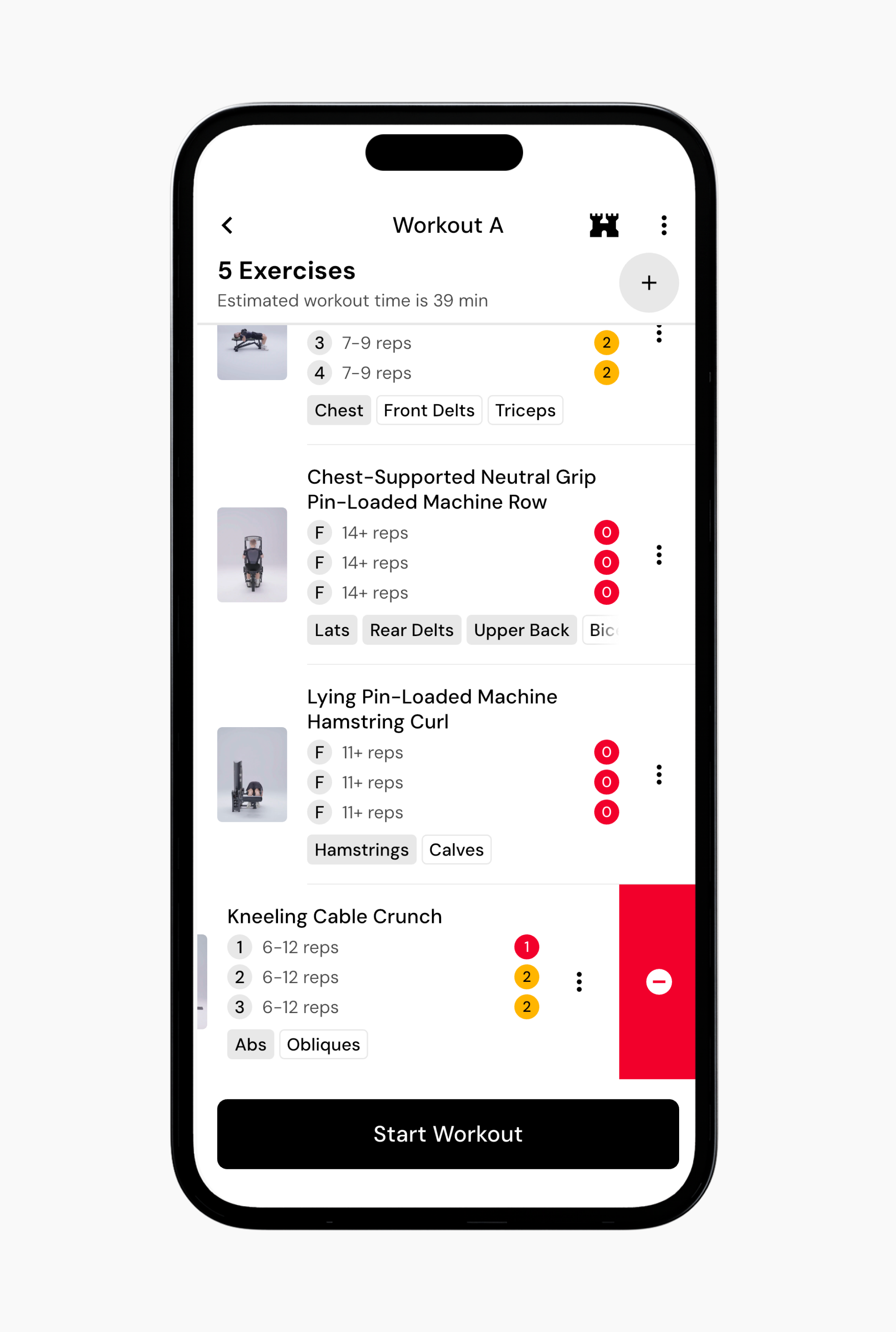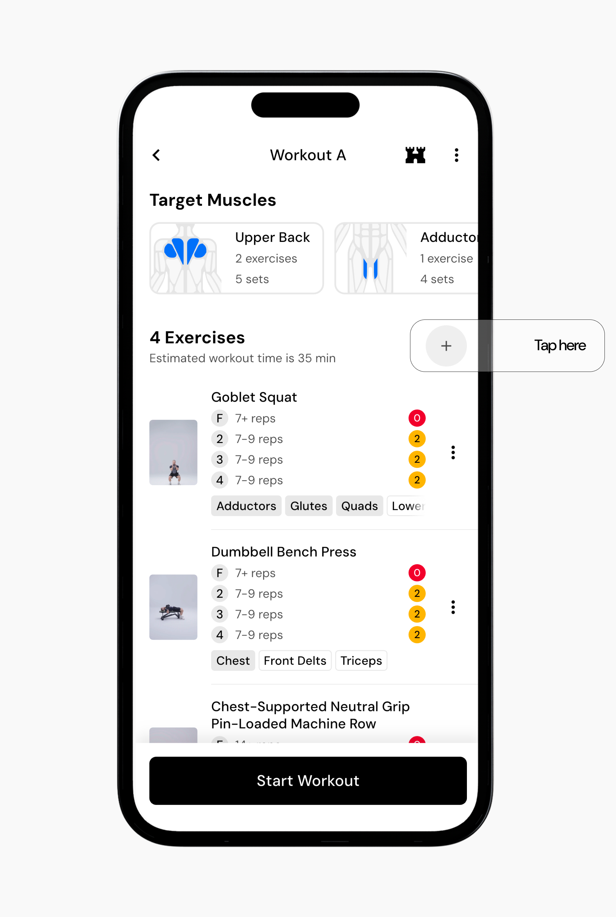 Tap Add Exercise next to the exercise count for that workout.