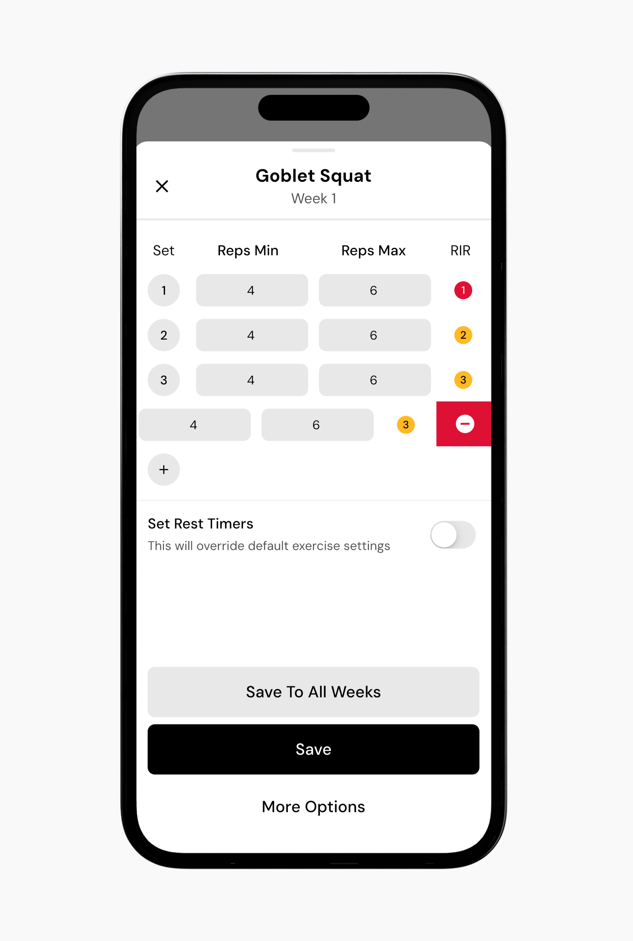 Option 3: If you want to apply the same reps to all exercises and all cycles, tap More Options.