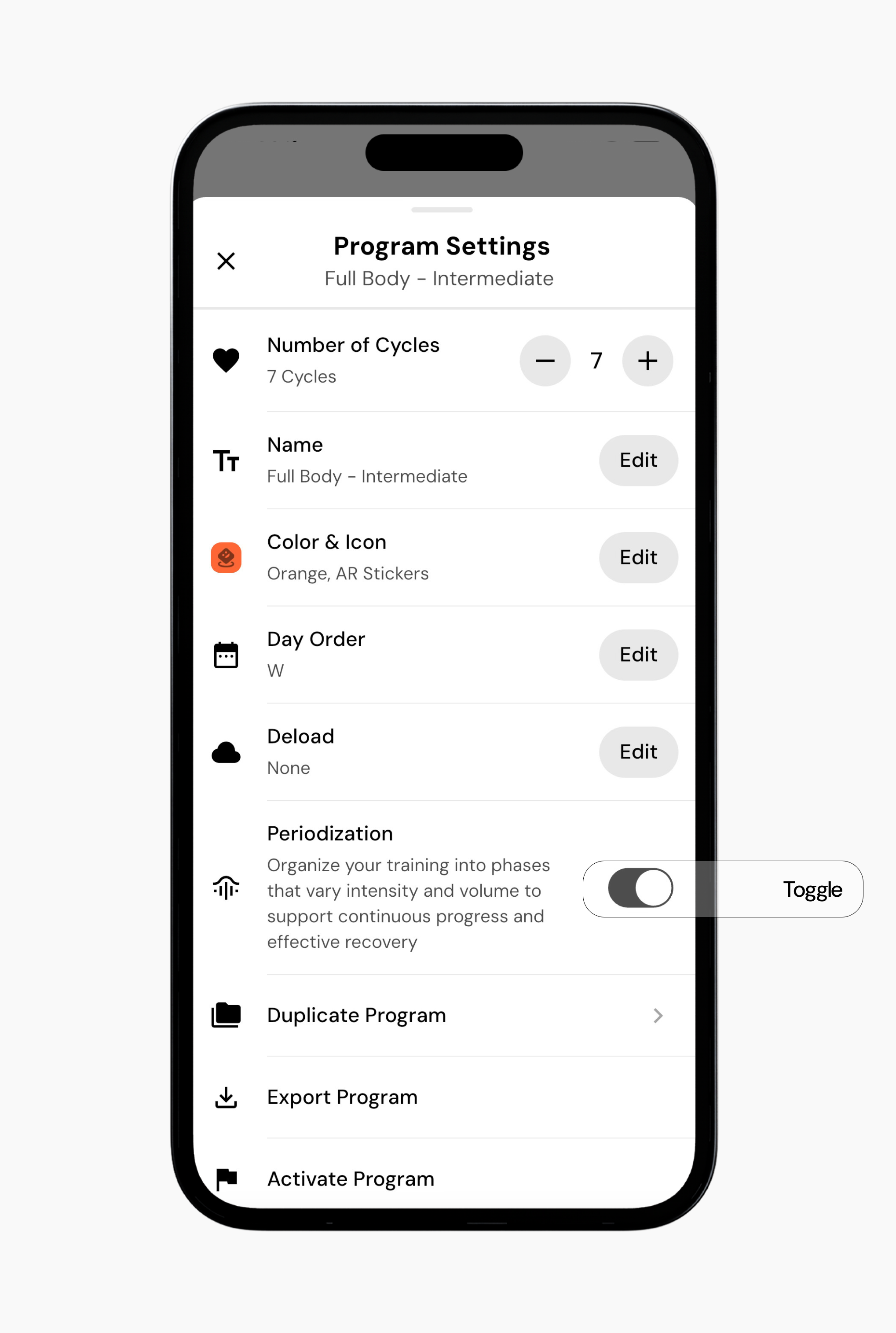 You can periodize RIR, rep ranges, and sets for any exercise in your program, whether the program was created using Smart Generation, built from scratch, or modified by adding or swapping exercises.