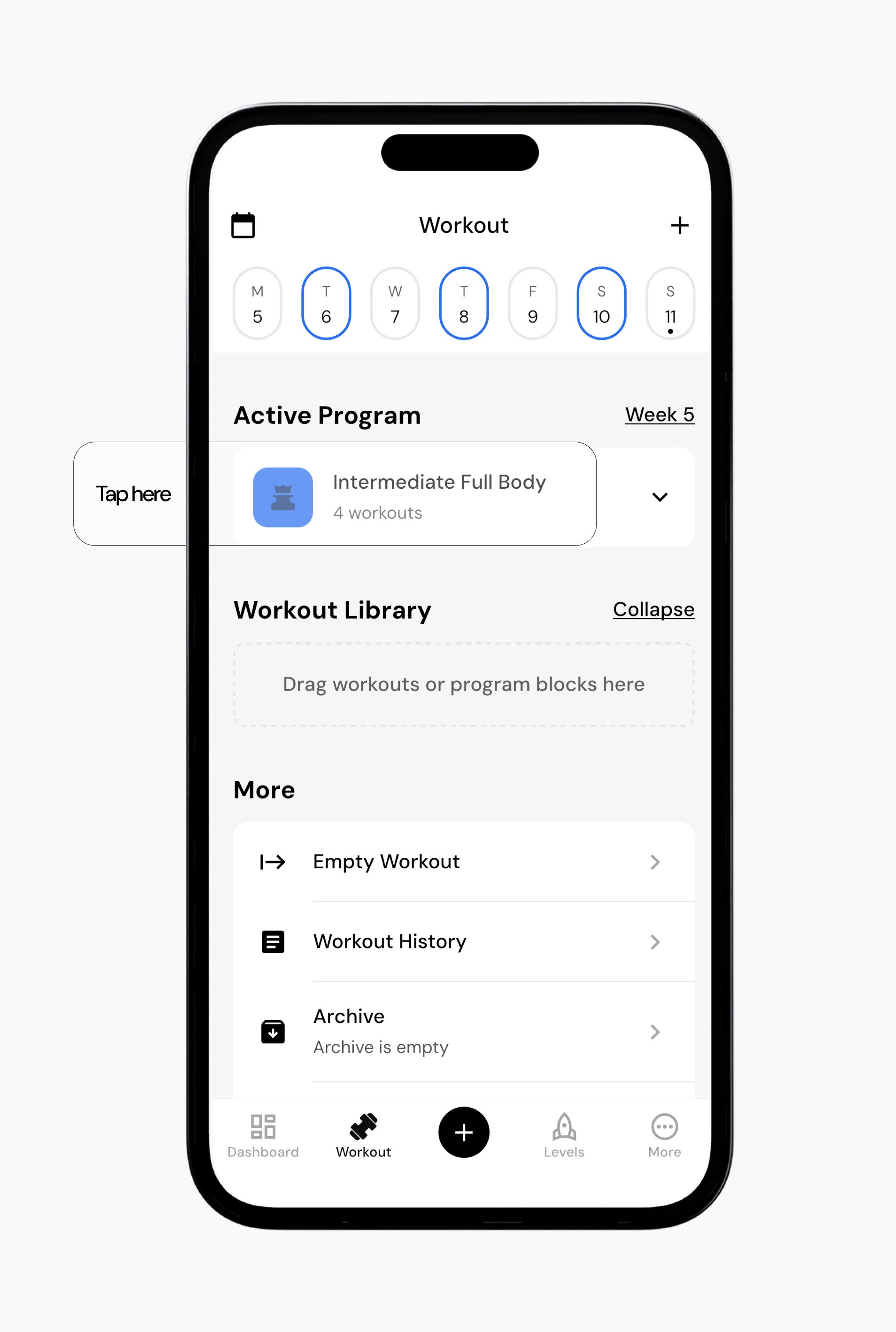 Go to the Workout tab.