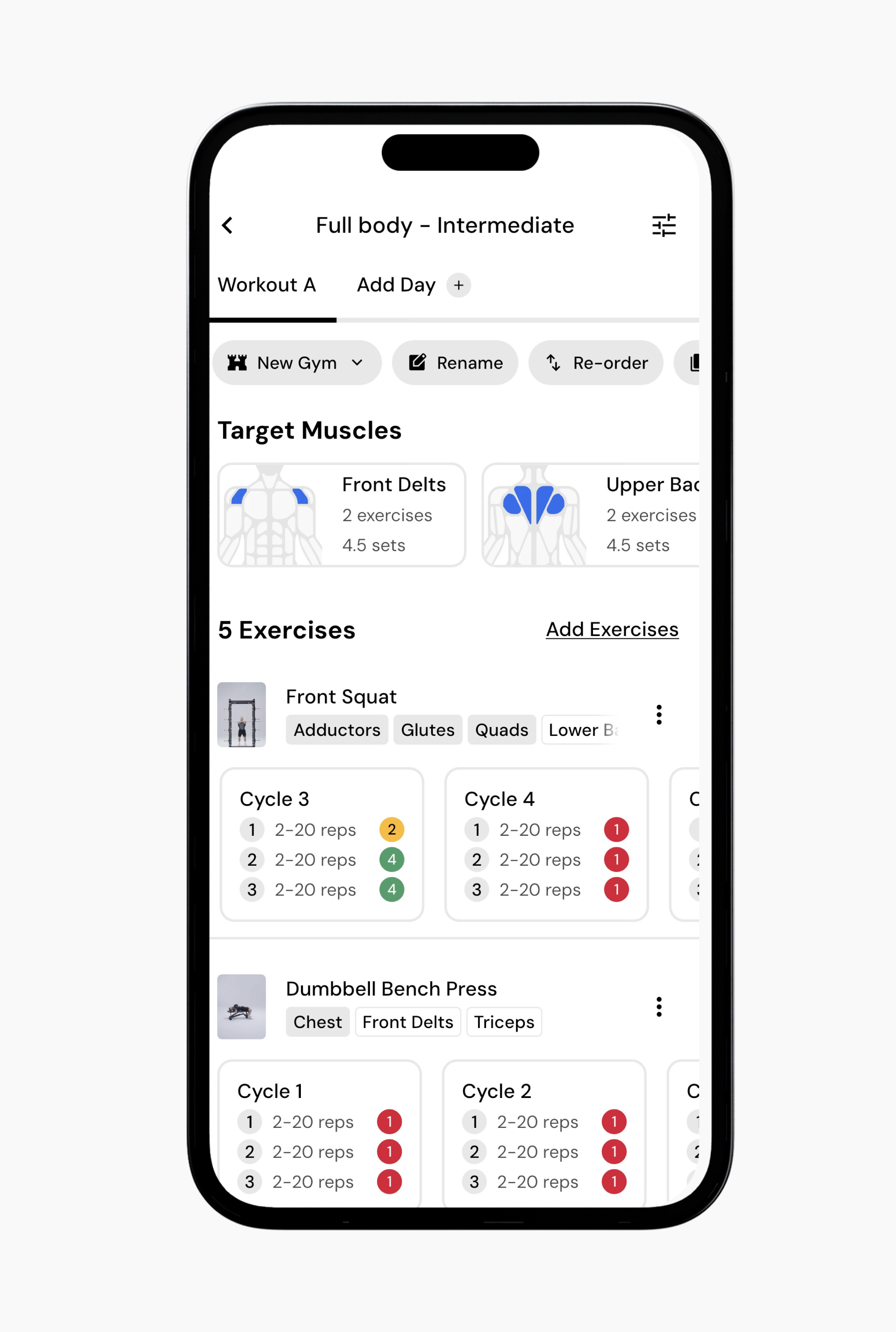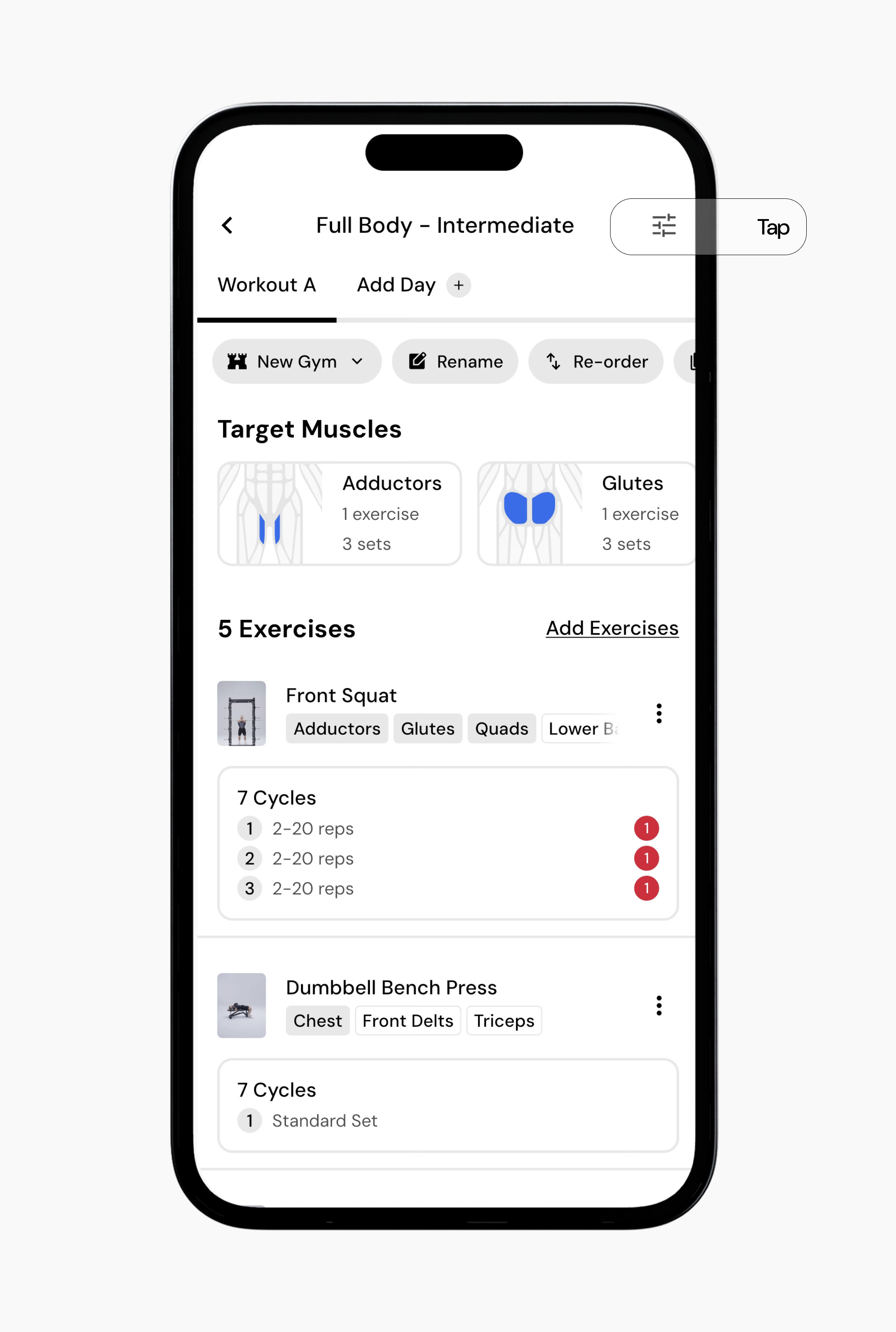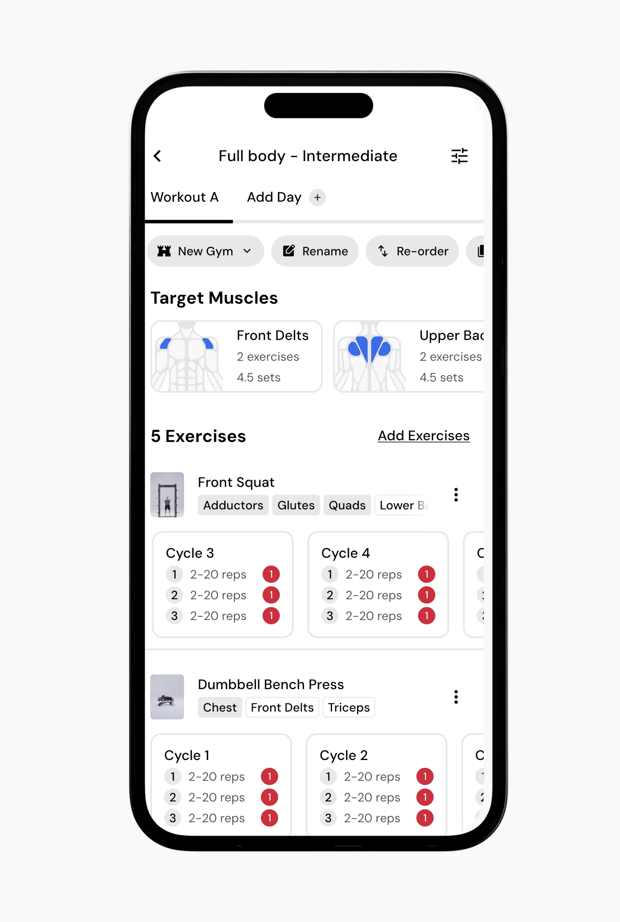 Once an exercise is part of your program, its targets can be adjusted across cycles.