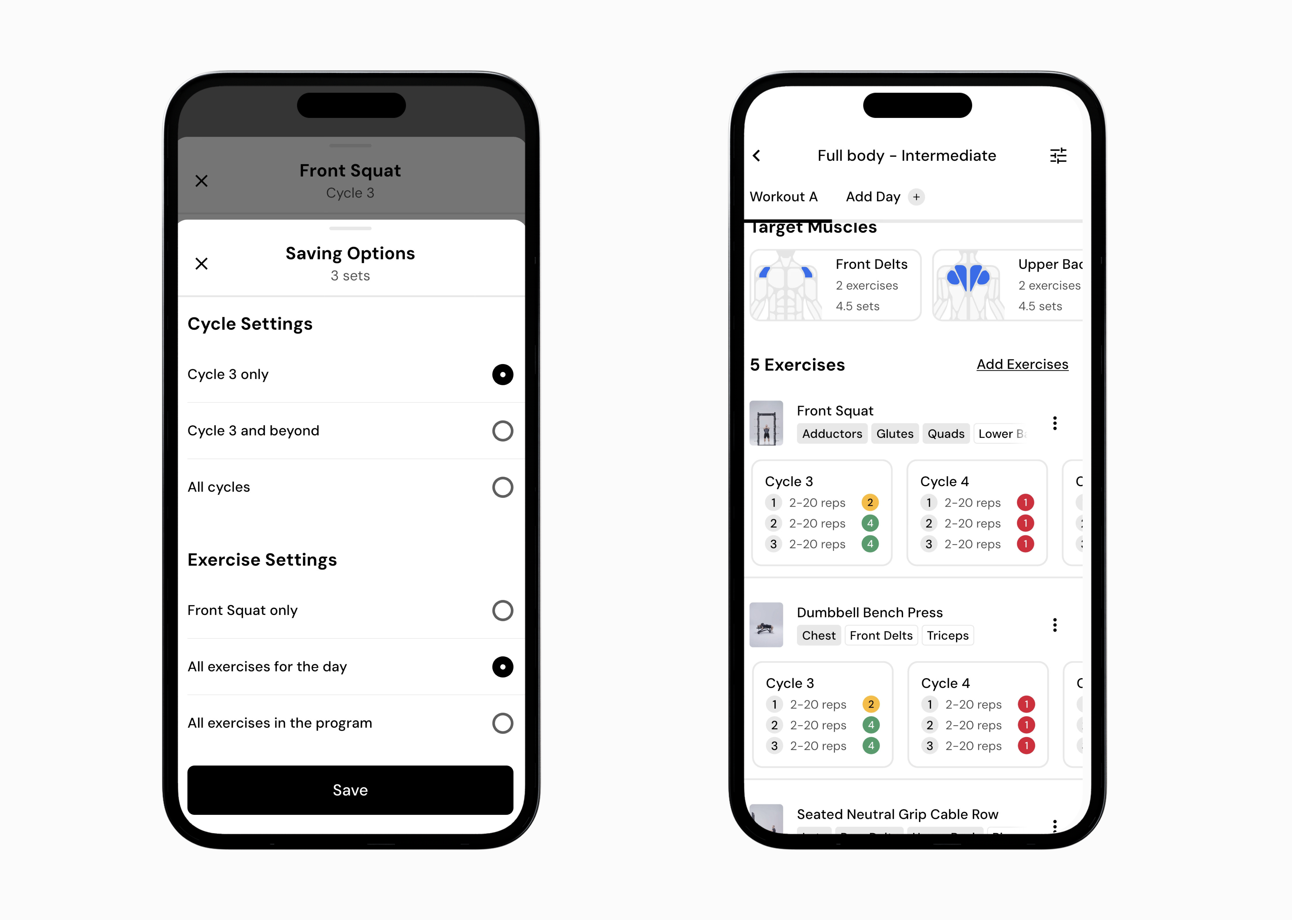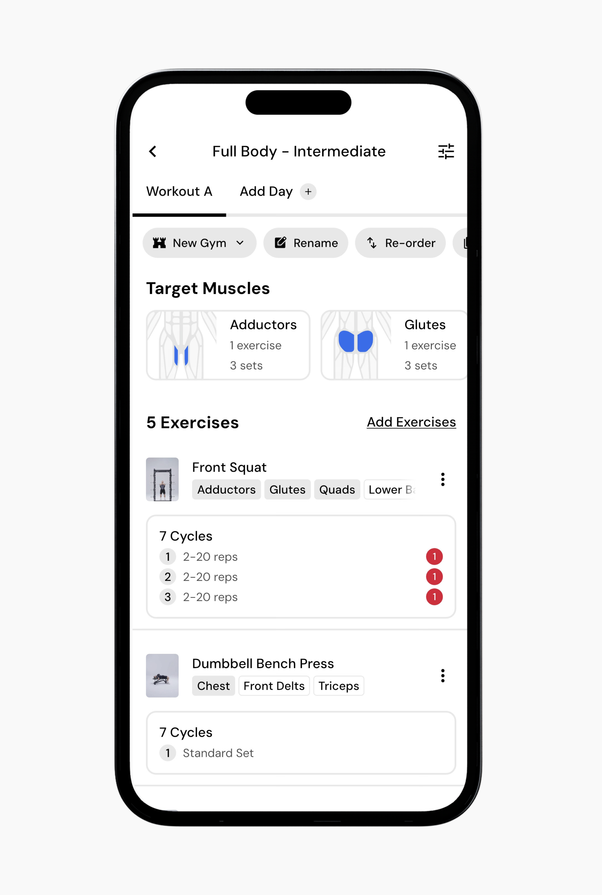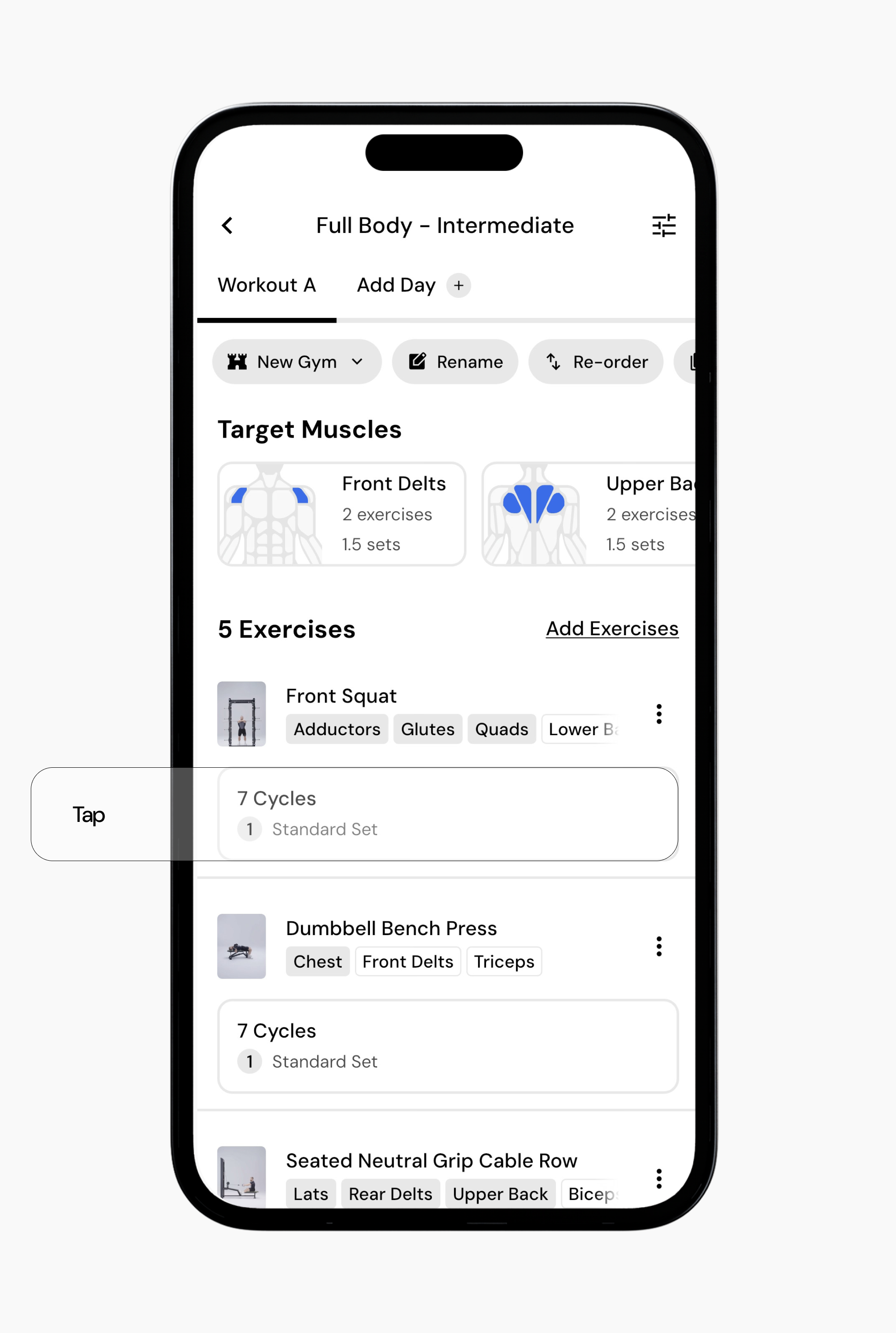 Once an exercise is part of your program, its targets can be adjusted across cycles.