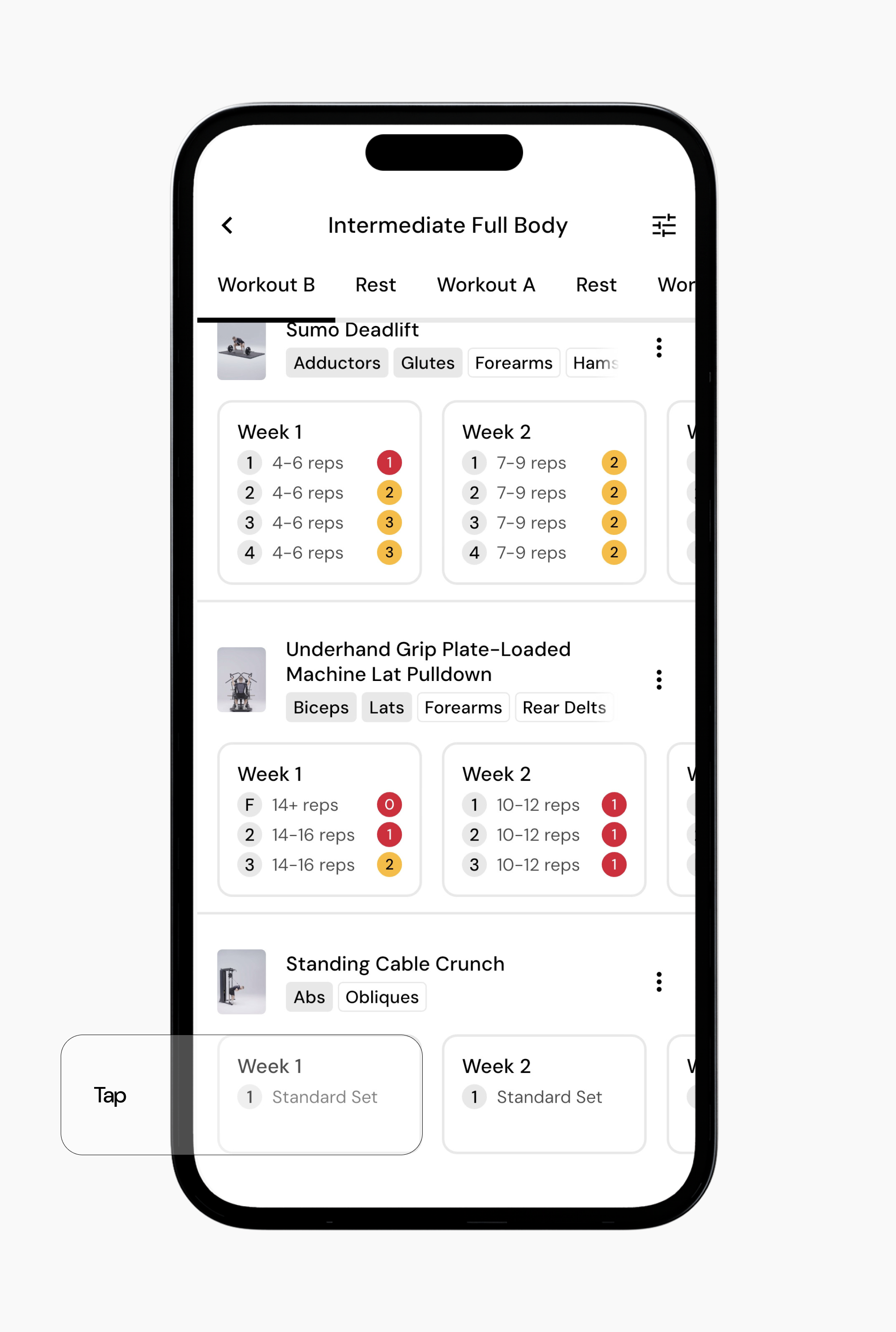 You can periodize RIR, rep ranges, and sets for any exercise in your program, whether the program was created using Smart Generation, built from scratch, or modified by adding or swapping exercises.