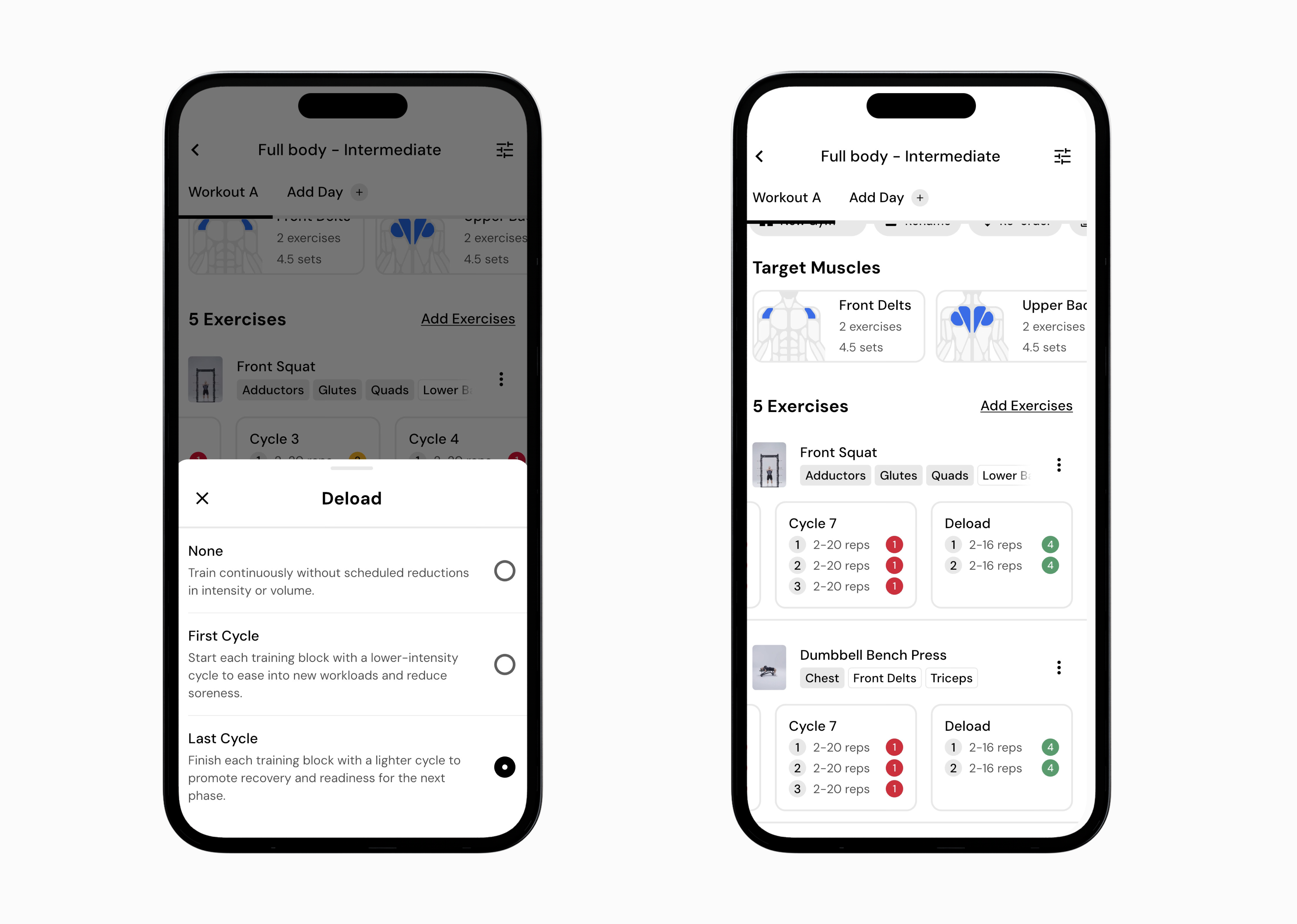 And select if you want to deload at the beginning or end of your cycle.