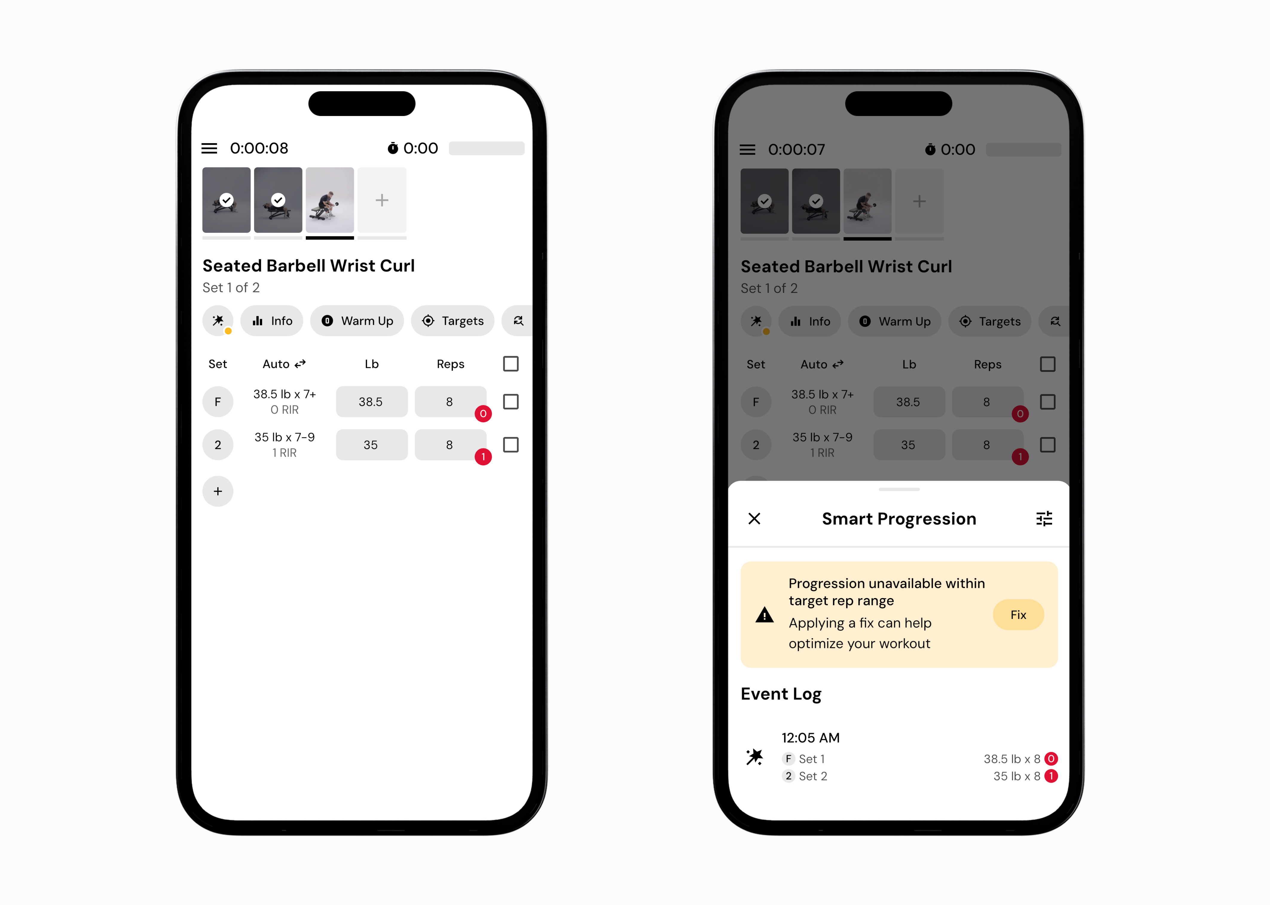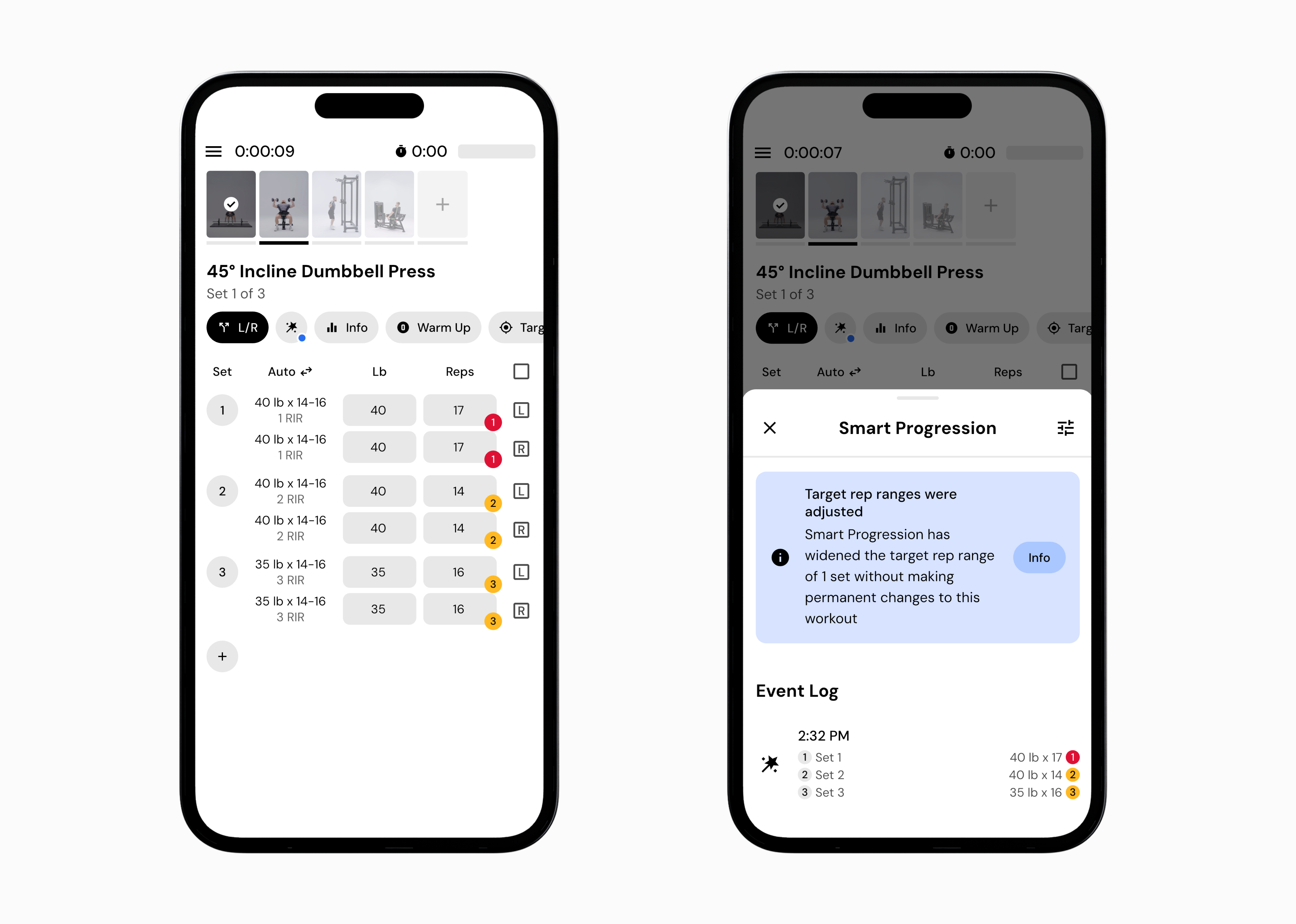 Log what you actually perform. Smart Progression will adapt based on your logged sets.